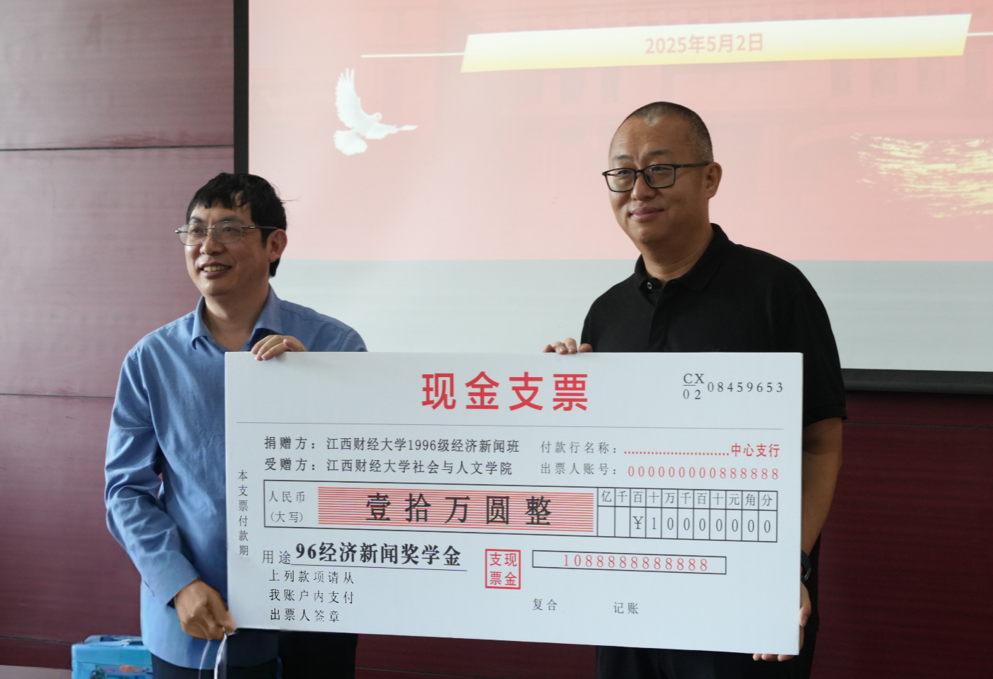 春和景明,万物焕新。5月1日至2日,电竞博彩 96级经济新闻班校友毕业25周年重返母校聚会,举行返校见面会及座谈活动等,并向江财校友基金会捐赠10万元设立专项奖学金。党委常委、副校长阙善栋出席见面会并致辞。阔别多年的同窗追忆求学岁月,执手畅叙情谊,重访师友共话初心,为春日的校园注入浓浓暖意。